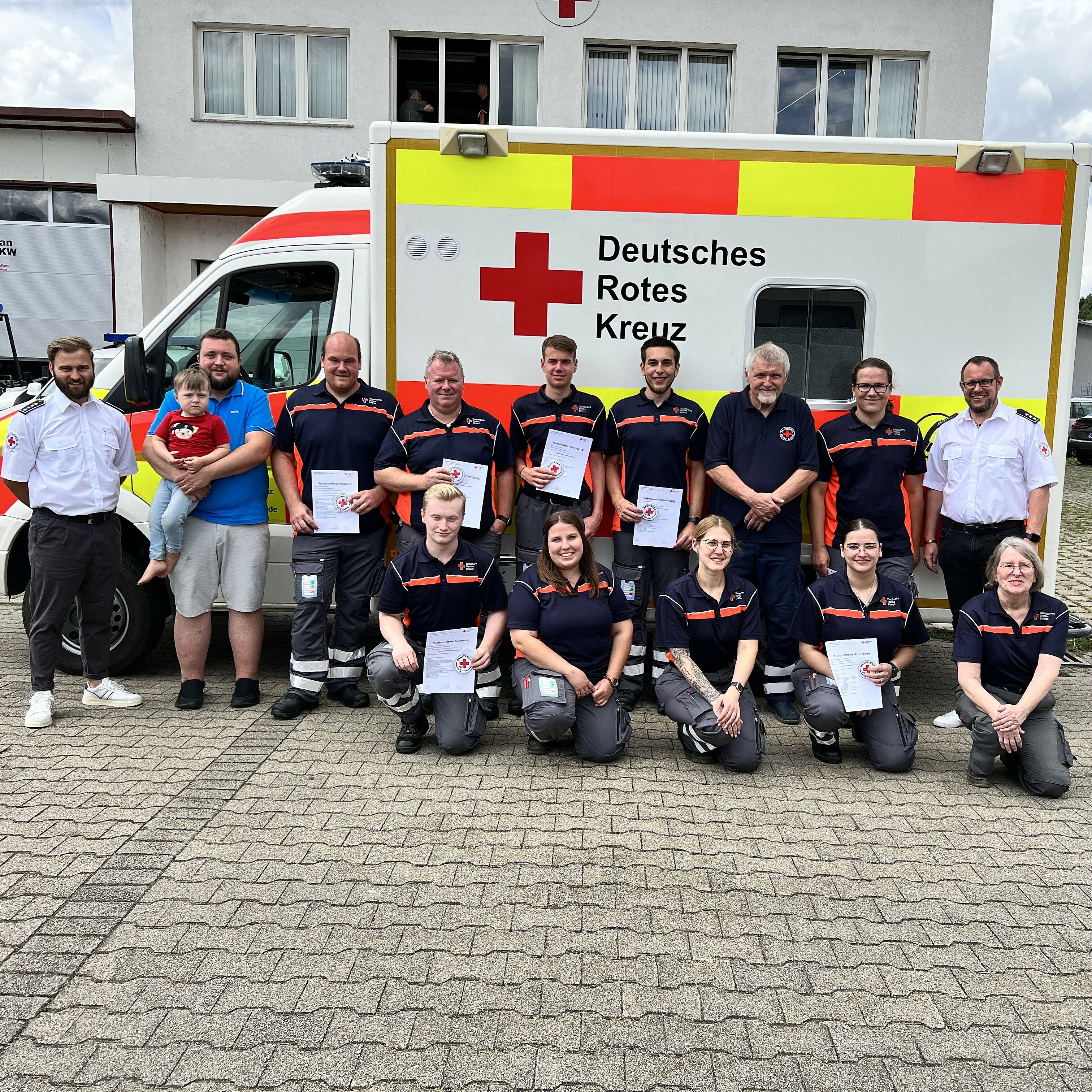 Am Samstag, den 22. Juli endete die Sanitätsausbildung am Standort Möckmühl welche erstmals in dieser Form durchgeführt wurde. Die theoretischen und praktischen Inhalte wurden an insgesamt zehn Abendveranstaltungen und zwei Samstagen vermittelt. Den Abschluss der Ausbildung bildete am Freitag die theoretische Prüfung und am Samstag die praktische Prüfung. Sowohl in der Theorie als auch in der Praxis konnten die Teilnehmenden ihr erlerntes Fachwissen und den Umgang mit Beatmungsbeutel, Larynxtubus und vielem mehr unter Beweis stellen. Durchweg konnten alle Teilnehmenden den Lehrgang mit einem sehr guten Ergebnis abschließen. Die Bereitschaft Möckmühl ist um zehn ausgebildete Sanitäterinnen und Sanitäter reicher. Danke an alle Teilnehmenden für das erbrachte Engagement, teilweise auch weit über das geforderte Maß hinaus.